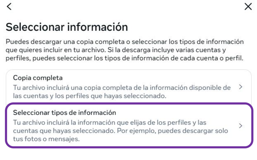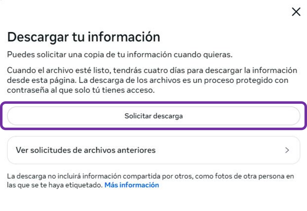 Para poder transformar tu chat de Instagram en un libro, tienes que descargar previamente una copia de tus mensajes de Instagram.